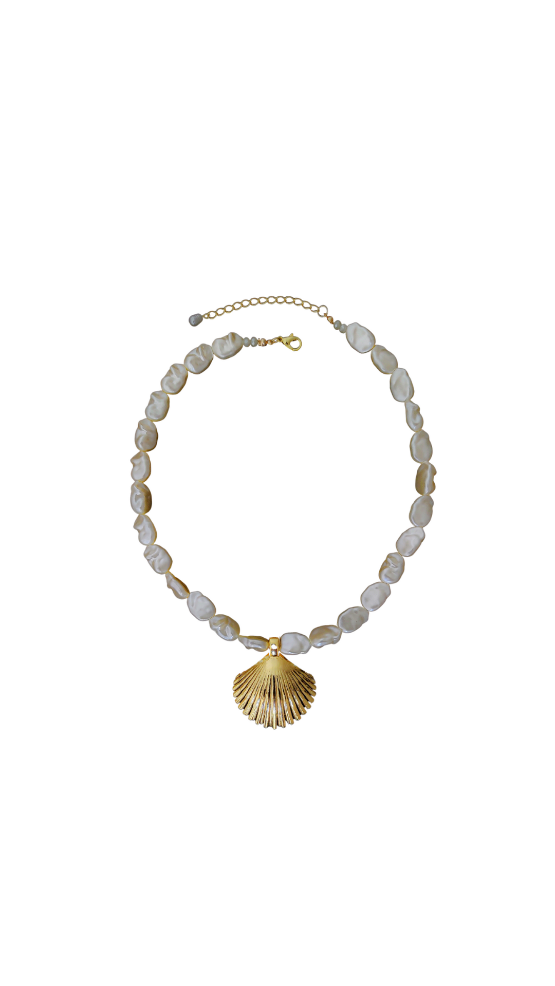 O Colar Concha Dourada é uma peça elegante com inspiração marítima, que combina pérolas de formato barroco com um pingente central de concha em acabamento dourado. O contraste entre a suavidade das pérolas e o brilho da concha cria um visual sofisticado.