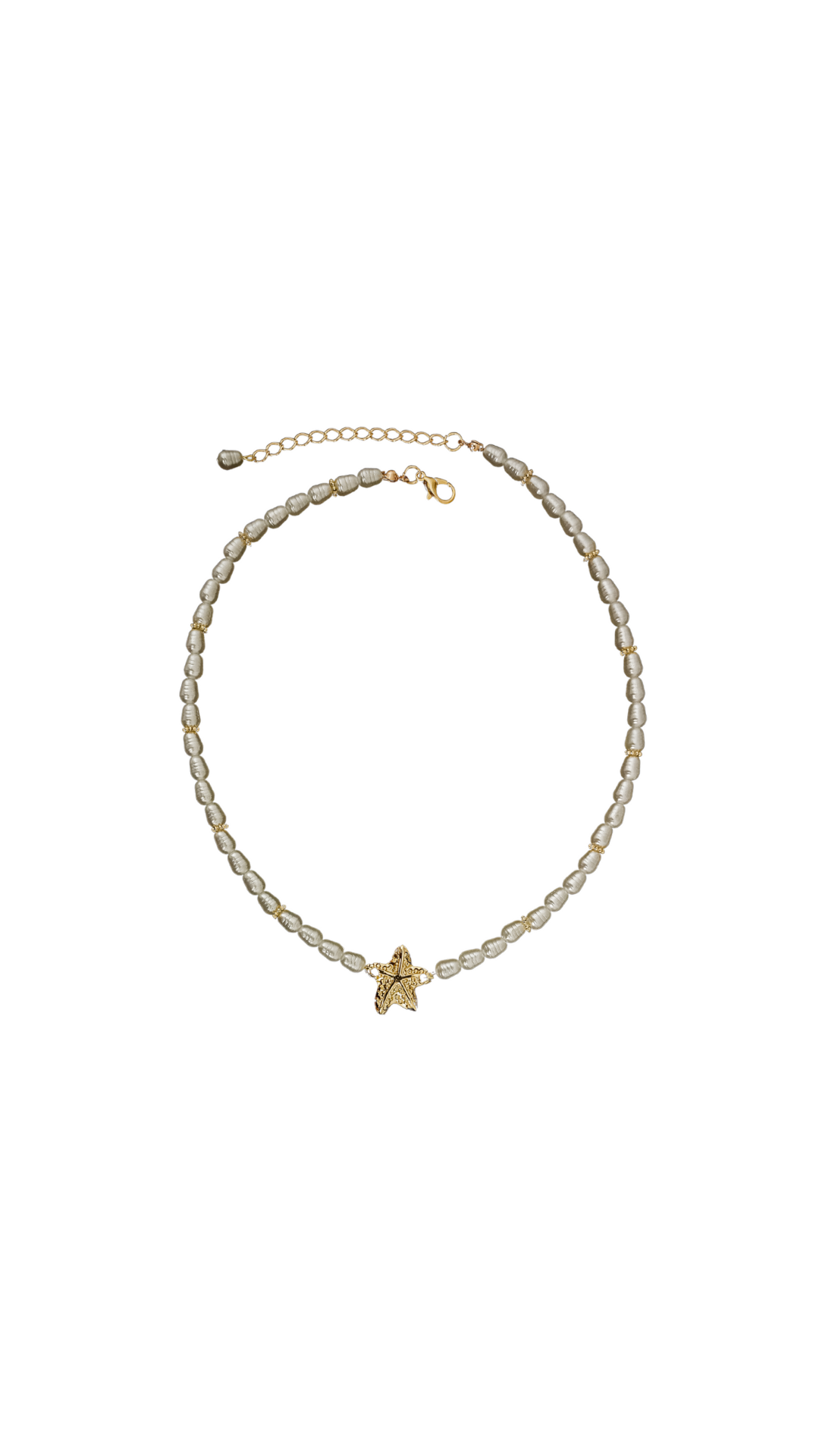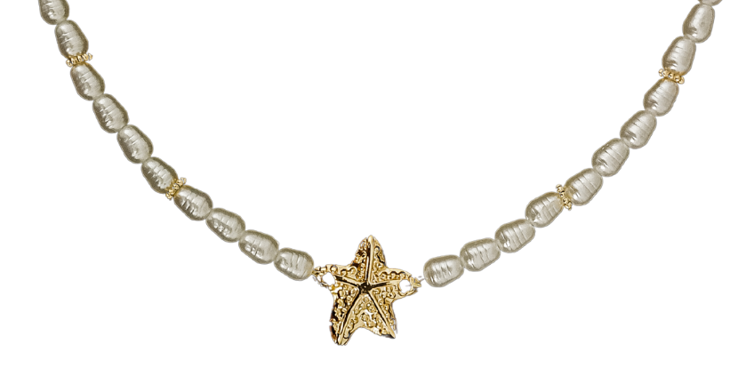 O Colar Estrelinha é uma peça delicada e cheia de charme, que une a elegância das pérolas a suavidade da estrela do mar em acabamento dourado. As pérolas de formato orgânico trazem leveza e naturalidade ao design, enquanto o pingente central adiciona um toque de brilho e personalidade.
