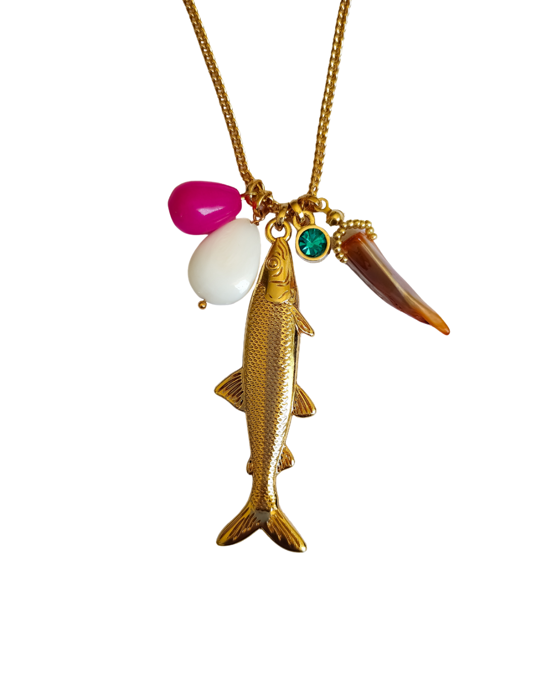 Um colar que é puro charme e originalidade. O pingente em formato de peixe dourado, combinado com pedras em tons vibrantes, traz um toque moderno e divertido ao visual; perfeito para compor looks casuais. Ideal para quem gosta de peças com personalidade — ou para quem quer surpreender alguém especial com um presente único. Homens que buscam um presente marcante vão adorar esta escolha: é diferente, cheio de estilo e transmite cuidado nos detalhes.