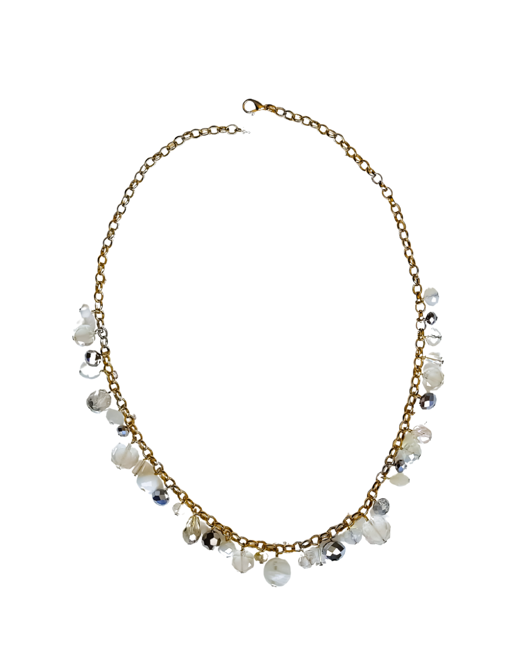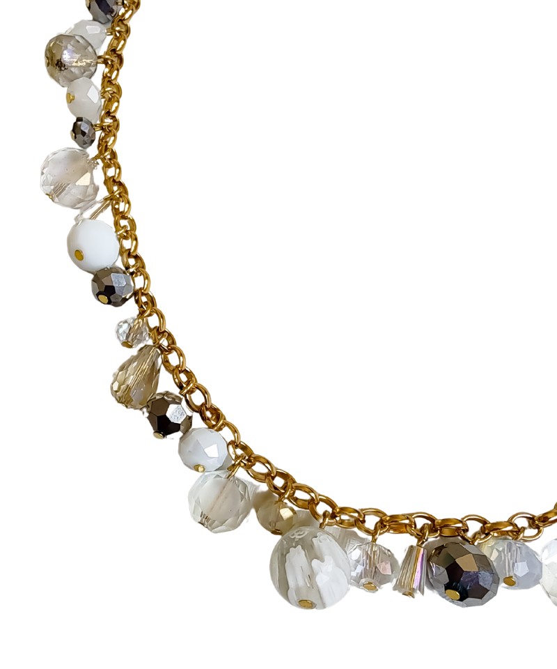O colar e a pulseira são confeccionados com pedrarias múltiplas, aplicadas manualmente. Por isso, cada conjunto é único; pequenas variações fazem parte do processo artesanal e reforçam a exclusividade da peça.