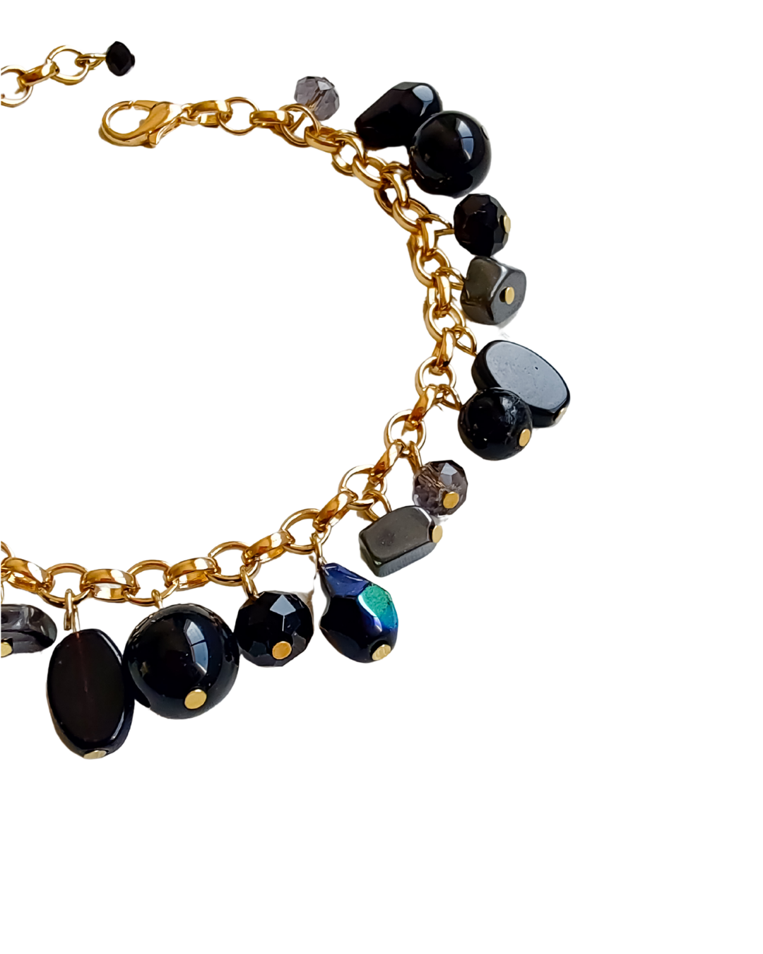 O Conjunto Essência – Preto traduz elegância atemporal com personalidade. Composto por colar, pulseira e brincos, ele combina a profundidade do preto com o brilho sofisticado do dourado, criando um visual marcante e fácil de usar em diversas ocasiões.