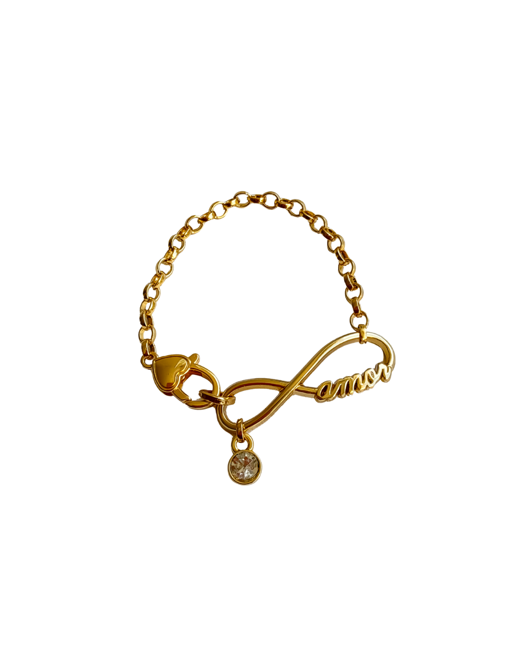 A Pulseira Dourada Infinito Amor é um símbolo elegante de carinho e conexão eterna. Seu design delicado, com o símbolo do infinito e a palavra “amor” em destaque, transmite sentimentos de forma sutil e sofisticada. O toque dourado dá o brilho ideal para acompanhar qualquer look, do casual ao elegante.